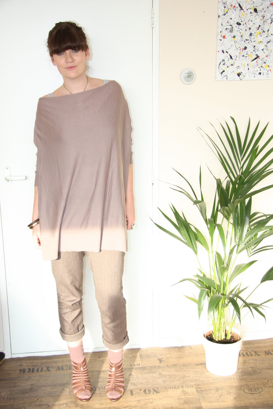 Mein Outfit für heute - nach dem Foto wars mir zu langweilig und ich hab nochn fesches Turbänchen gebunden^^ und ne super oversided Strickjacke drüber getragen - sonst wärs zu kalt. Herzstück des Outfits sind natürlich die lang gewollten Wedges - mach einer mag finden, sie sähen aus wie Klumpen am Fuß - ich mag sie.